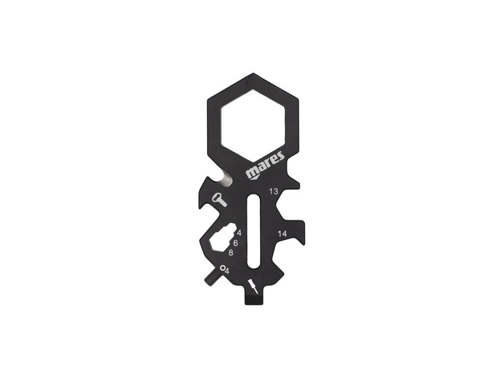 Smarty mini multifunkční nářadí je příslušenství, které by měli mít všichni potápěči. Je vyrobeno z nerezové oceli 440 s PVD povlakem, který odolává korozi. Technické vlastnosti: • Mini multifunkční nářadí s exkluzivním designem Mares. • Kompaktní nářadí ideální pro základní operace • Celková délka: 95 mm • Tloušťka: 4 mm • Materiál: nerezová ocel 440 s PVD povlakem, který zabraňuje korozi ve vodě • Otvírák na láhve • Řezač vlasců • Imbusový klíč 4 mm • Šroubovák • Šestihranné klíče 4, 6, 8, 13, 14 mm