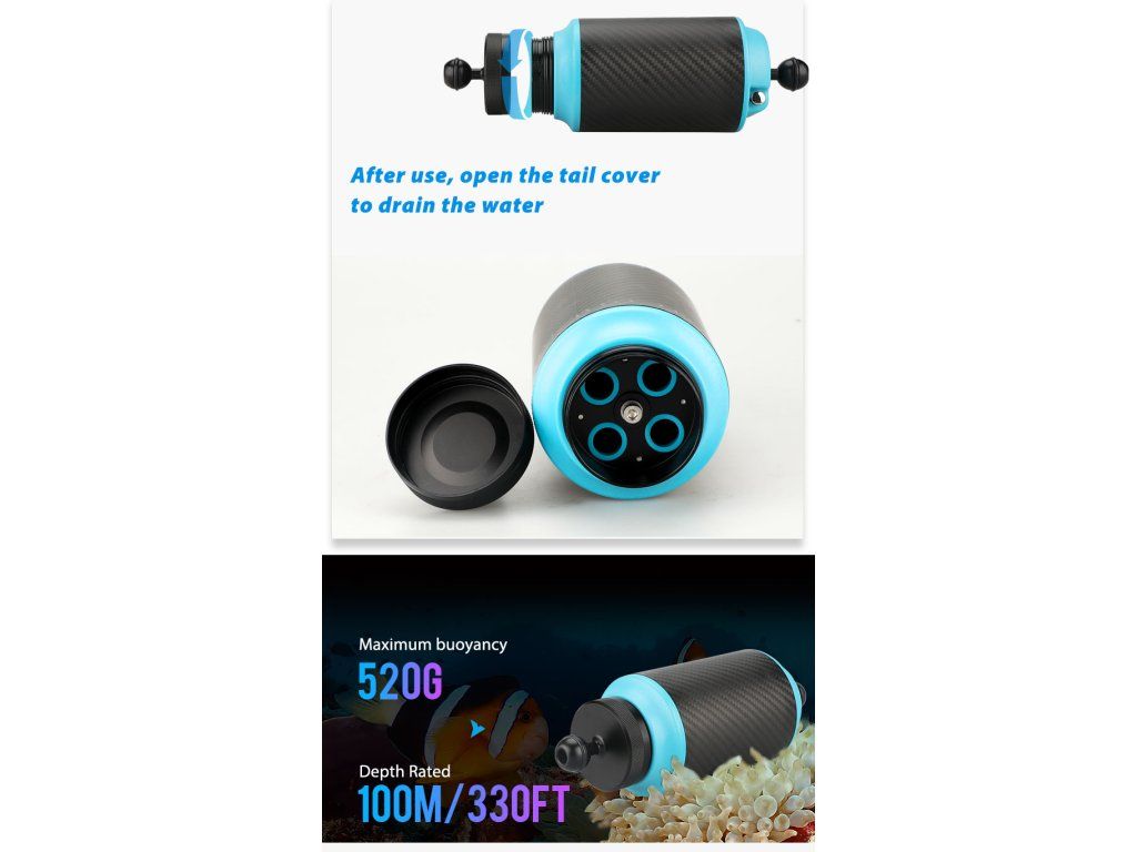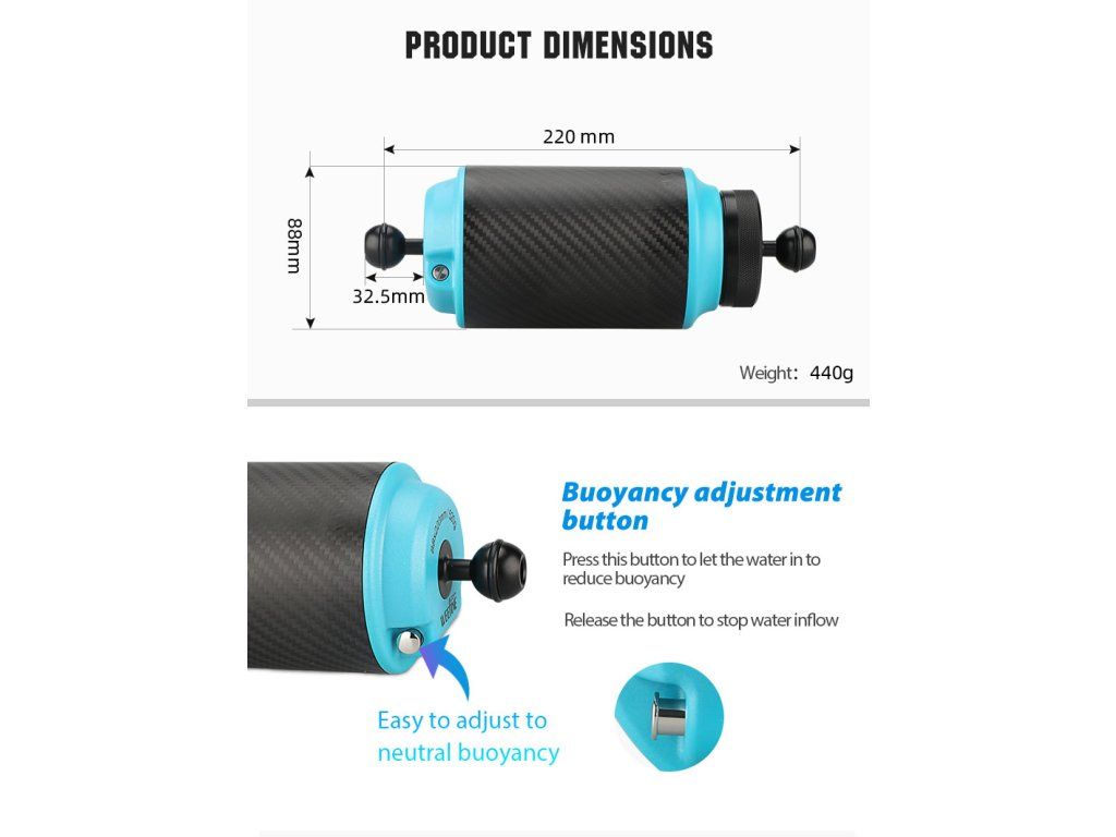 Vztlakové rameno Weefine s možností regulace vztlaku. Pomocí tlačítka lze prostor ramene zaplavit a tímto způsobem regulovat vztlak.