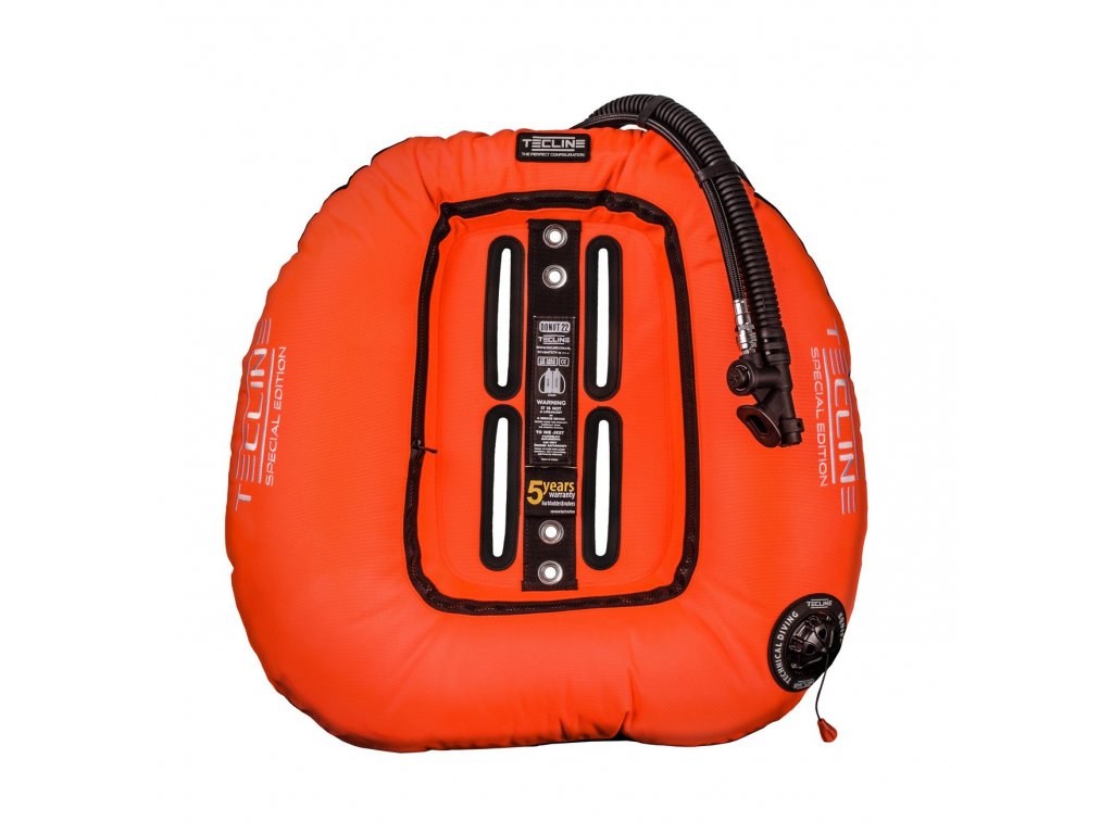 Křídla Tecline splňují i nejnáročnější požadavky technicky zaměřených potápěčů. Mají velmi dobré vyvážení, snadnou dostupné ventily a lehký plastový inflátor pro snadné ovládání, bez pozdějších problému se servisem – oceníte zejména při cestování. Záruka v délce 5let na stálost barvy vnějšího materiálu. V ceně křídla je inflátorová LP Proflex hadice, vrapová hadice o délce 40 cm a transportní obal.