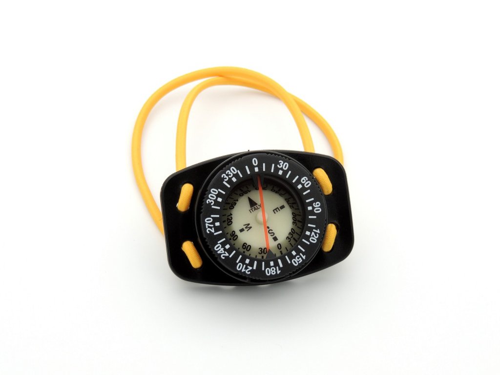 Kompaktní a lehký design tohoto kompasu zajišťuje, že vás nebude obtěžovat ani při delších ponorech. Odolné plastové pouzdro chrání citlivé části kompasu před poškozením, což prodlužuje jeho životnost. Černá barva kompasu v kombinaci se žlutými elastickými pásky dodává moderní vzhled a zároveň usnadňuje jeho nalezení mezi ostatním vybavením.