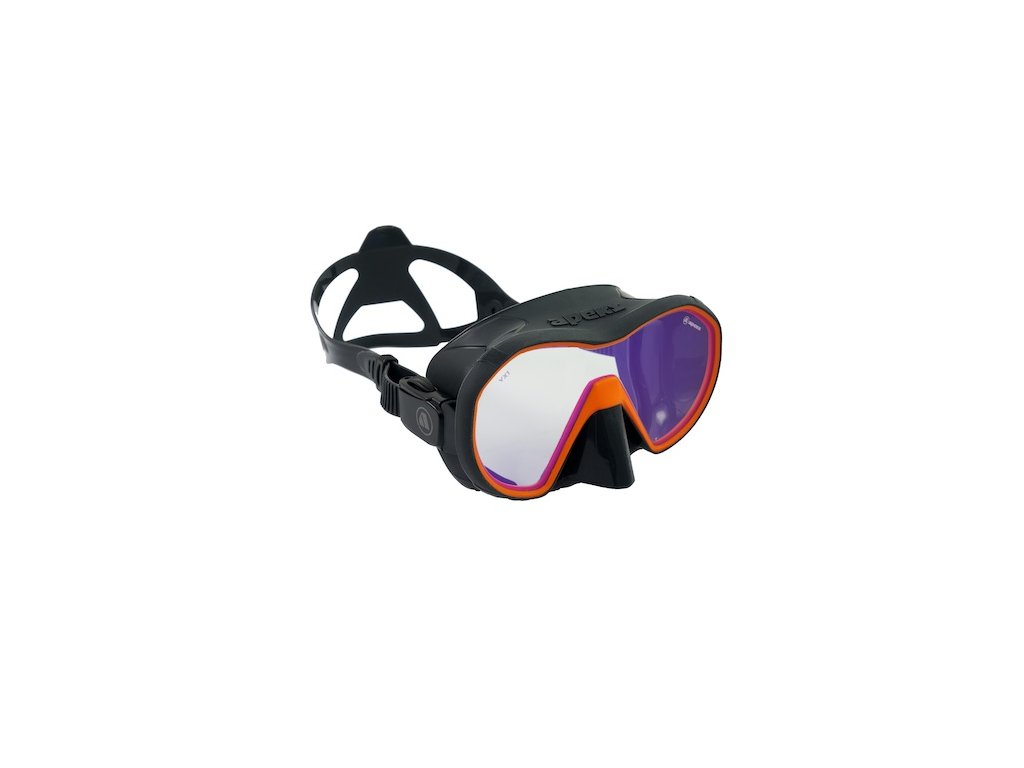 Kompaktní a bezrámové potápěčské brýle Apeks VX1 UV CUT v tmavě šedé/oranžové barvě nabízí široký výhled, malý objem a nízký profil, což zajišťuje pohodlí a snadnou manipulaci během potápění. Tato maska je vybavena jedním zorníkem z tvrzeného skla, který poskytuje jasný a nezkreslený pohled pod vodou.