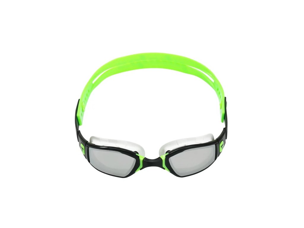 - technologie zakřivených zorníků pro rozšířené zorné pole umožňuje plavci sledovat stěny a závodníky, aniž by musel měnit polohu hlavy