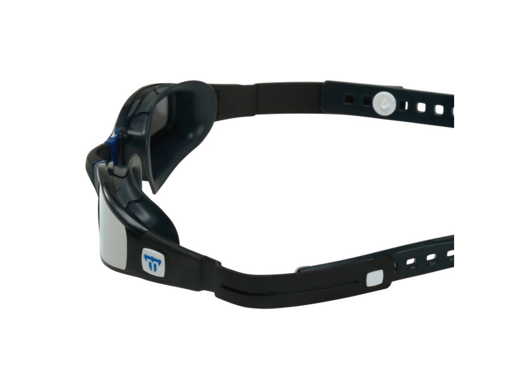 - technologie zakřivených zorníků pro rozšířené zorné pole umožňuje plavci sledovat stěny a závodníky, aniž by musel měnit polohu hlavy