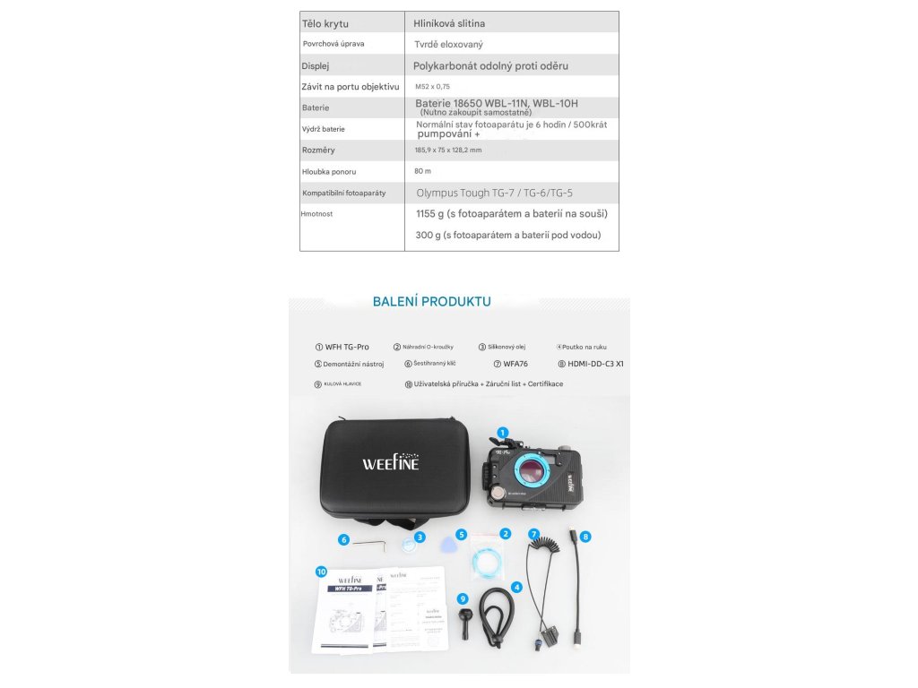 Weefine TG-PRO potápěčské pouzdro pro Olympus TG-7 / TG-6 / TG-5