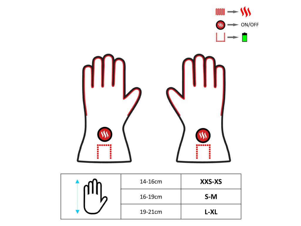- Vyhřívací prvek je umístěn kolem všech prstů, díky čemuž zůstanou vaše ruce po celou dobu v příjemném teple