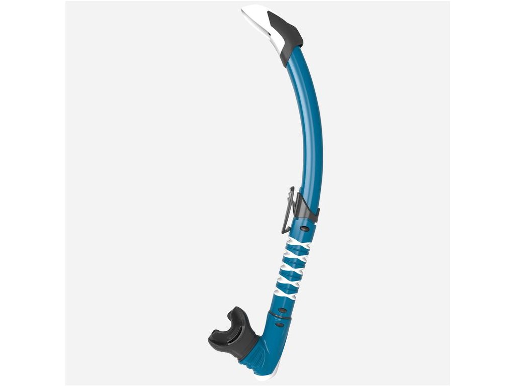 Jeho eliptický výdechový ventil chrání Zephyr Flex před pronikáním vody a zároveň usnadňuje jeho vyprazdňování. Anatomický silikonový náustek snižuje únavu čelistí a její pružný vrchní deflektor omezuje vstup stříkající vody do šnorchlu, když je moře drsné. Jeho ergonomické připevnění je snadné, dokonce i v silných rukavicích.