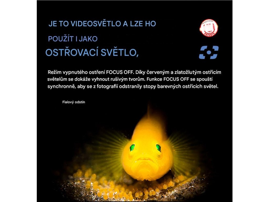 - Variabilní barevné spektrum: Barevný režim generuje až 600 automaticky se měnících barev pro kreativní podvodní video.