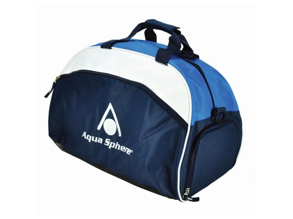 AQUA SPHERE SPORTS BAG MEDIUM Velmi prostorná taška s polstrovaným držadlem, vnější boční kapsou na zip a čelní suchou komorou. Síťovina zvyšuje prodyšnost celé tašky. Materiál: 100% polyester Rozměry: 60x27x30cm